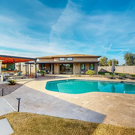 Deze 5-slaapkamer The Chandler Hideaway villa ligt op afstand van 3 km van het Tumbleweed Park en beschikt over een privézwembad met een bubbelbad.